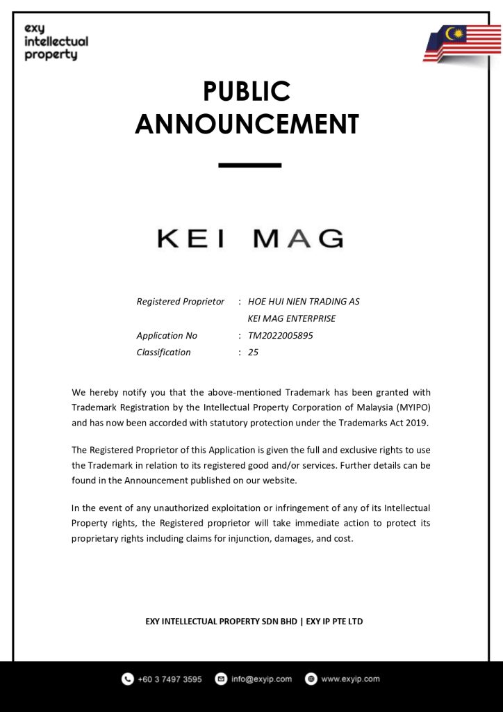 Registered Proprietor : HOE HUI NIEN TRADING AS KEI MAG ENTERPRISE