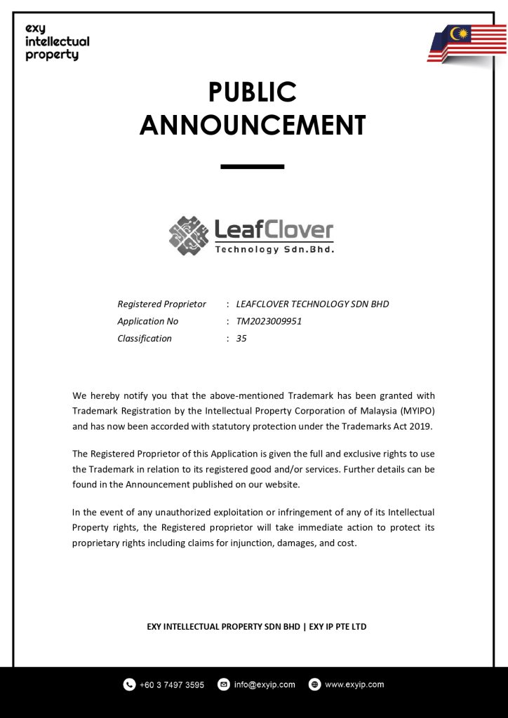 Registered Proprietor : LEAFCLOVER TECHNOLOGY SDN BHD
