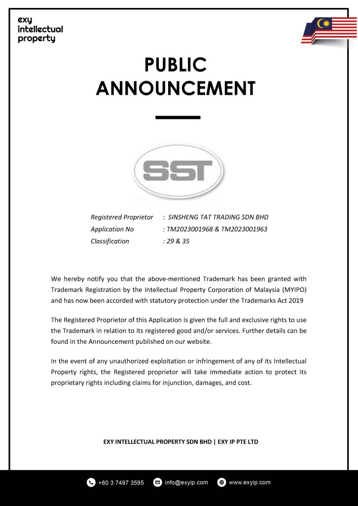 Registered Proprietor : SINSHENG TAT TRADING SDN BHD