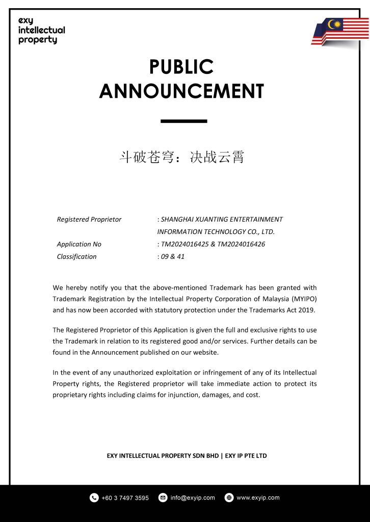 Registered Proprietor : SHANGHAI XUANTING ENTERTAINMENT INFORMATION TECHNOLOGY CO., LTD.