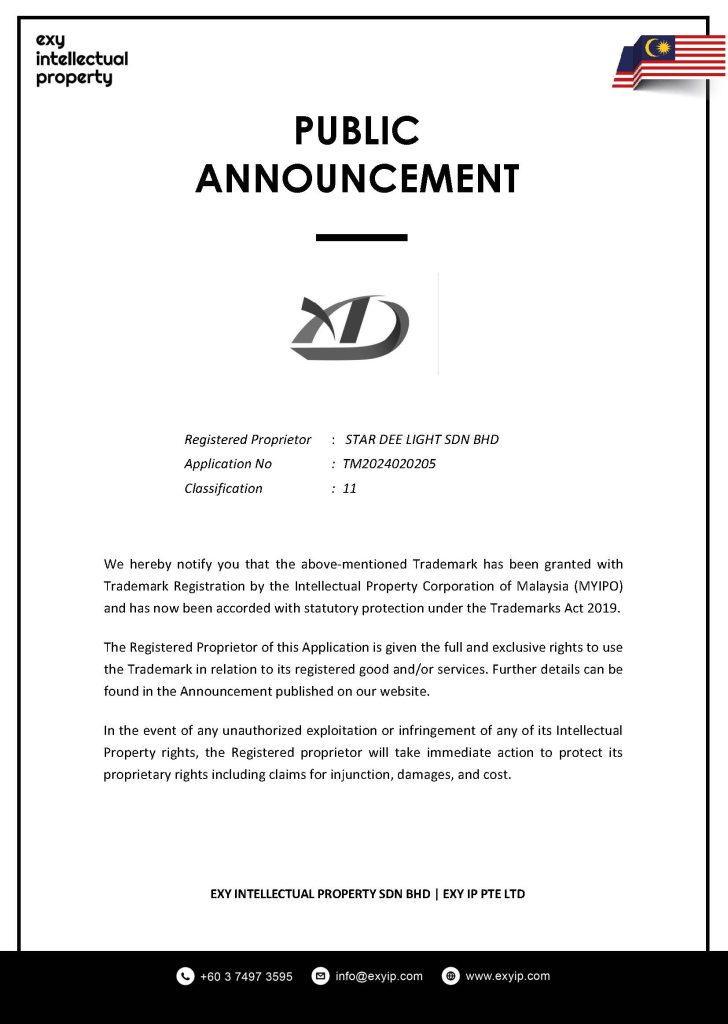 Registered Proprietor : STAR DEE LIGHT SDN BHD