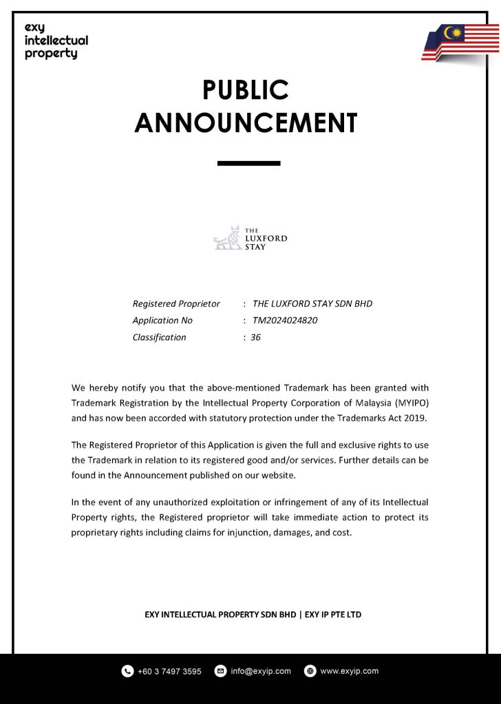 Registered Proprietor : THE LUXFORD STAY SDN BHD