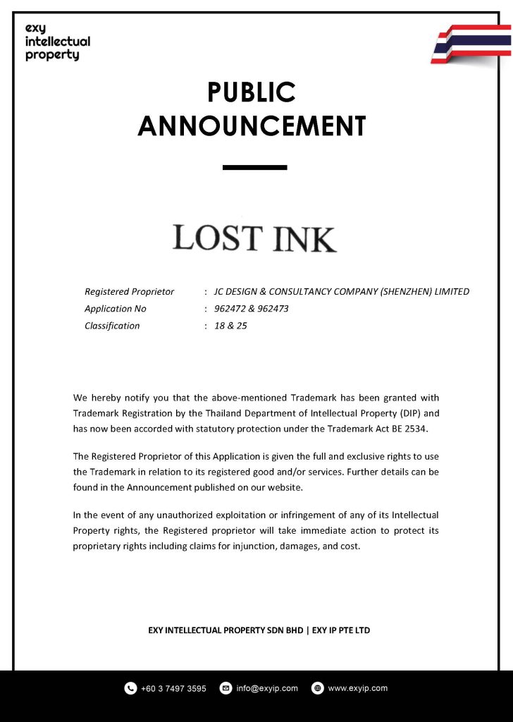 Registered Proprietor : JC DESIGN & CONSULTANCY COMPANY (SHENZHEN) LIMITED