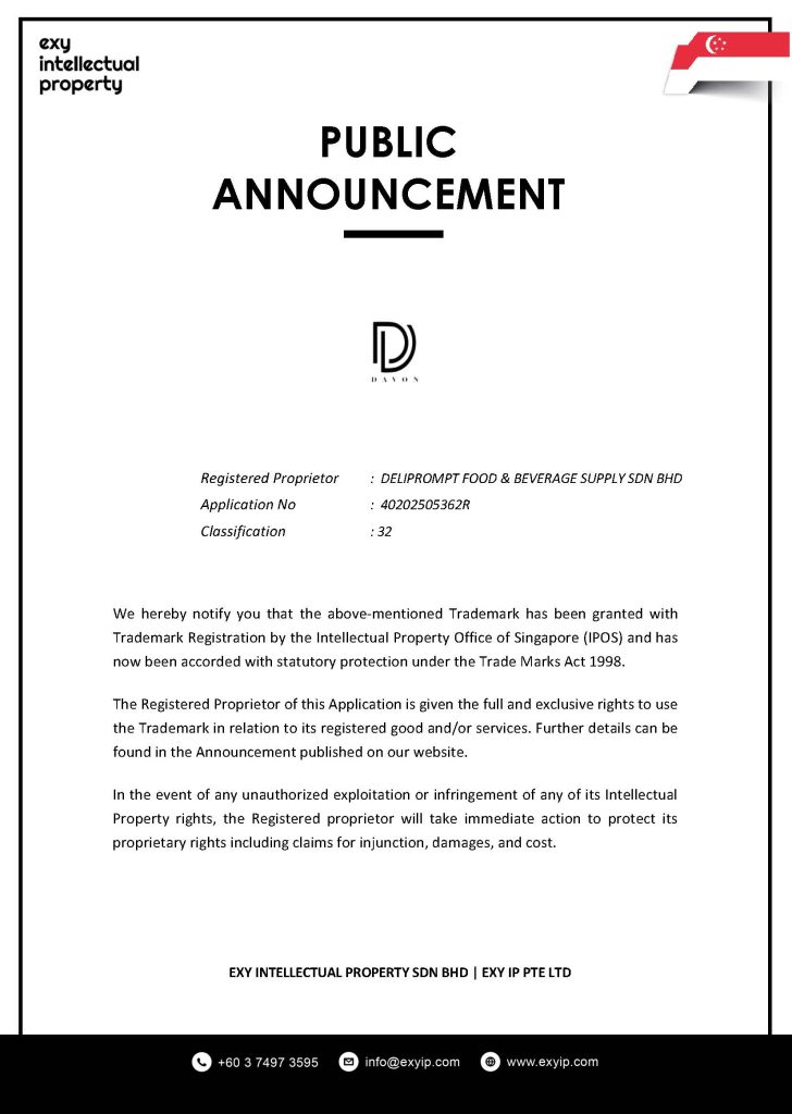 REGISTERED PROPRIETOR ; DELIPROMPT FOOD & BEVERAGE SUPPLY SDN BHD