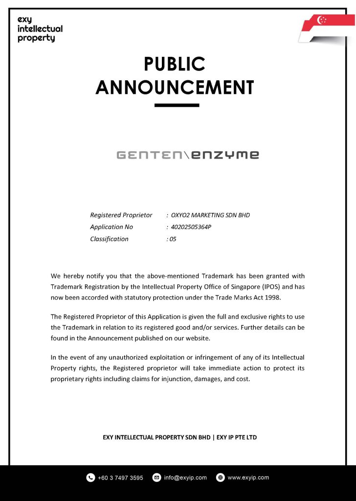 REGISTERED PROPRIETOR ; OXYO2 MARKETING SDN BHD