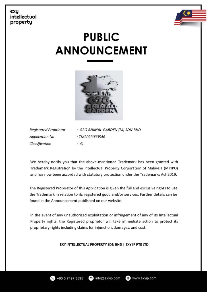 Registered Proprietor : G2g Animal Garden (M) Sdn Bhd                                                                                      Â