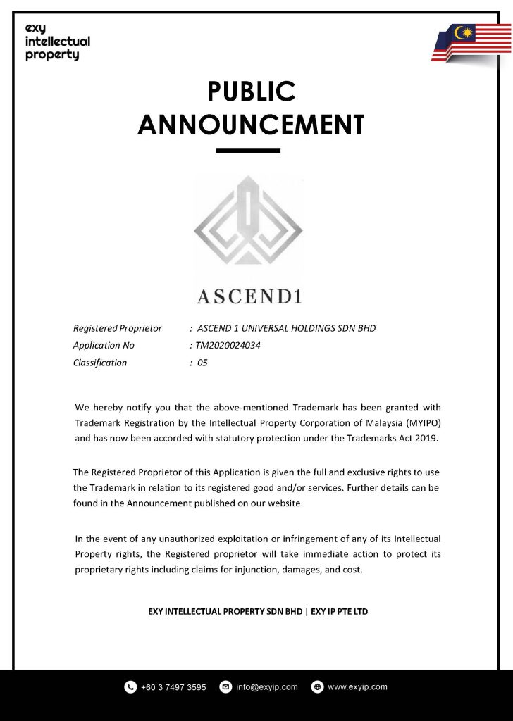 Registered Proprietor : Ascend 1 Universal Holdings Sdn Bhd
