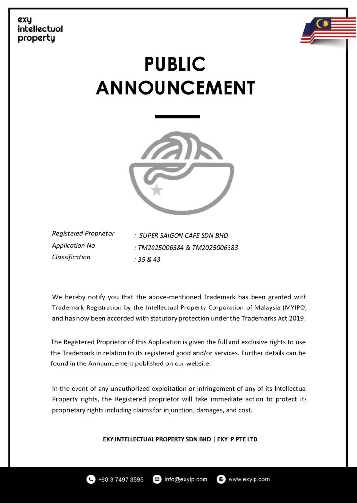 Registered Proprietor : Super Saigon Cafe Sdn Bhd