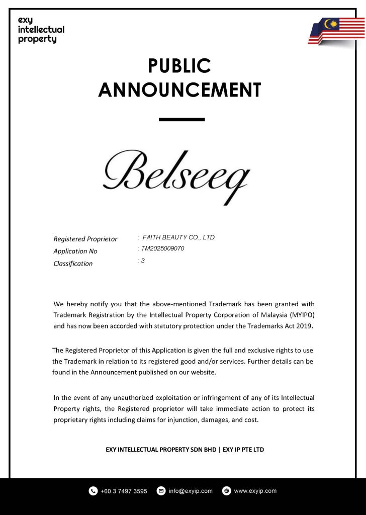 We hereby notify you that the above-mentioned Trademark has been granted with Trademark Registration by the Intellectual Property Corporation of Malaysia (MYIPO) and has now been accorded with statutory protection under the Trademarks Act 2019.