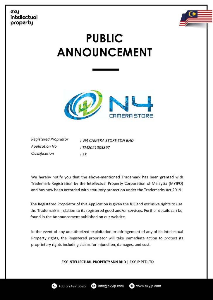 Registered Proprietor : N4 Camera Store Sdn Bhd