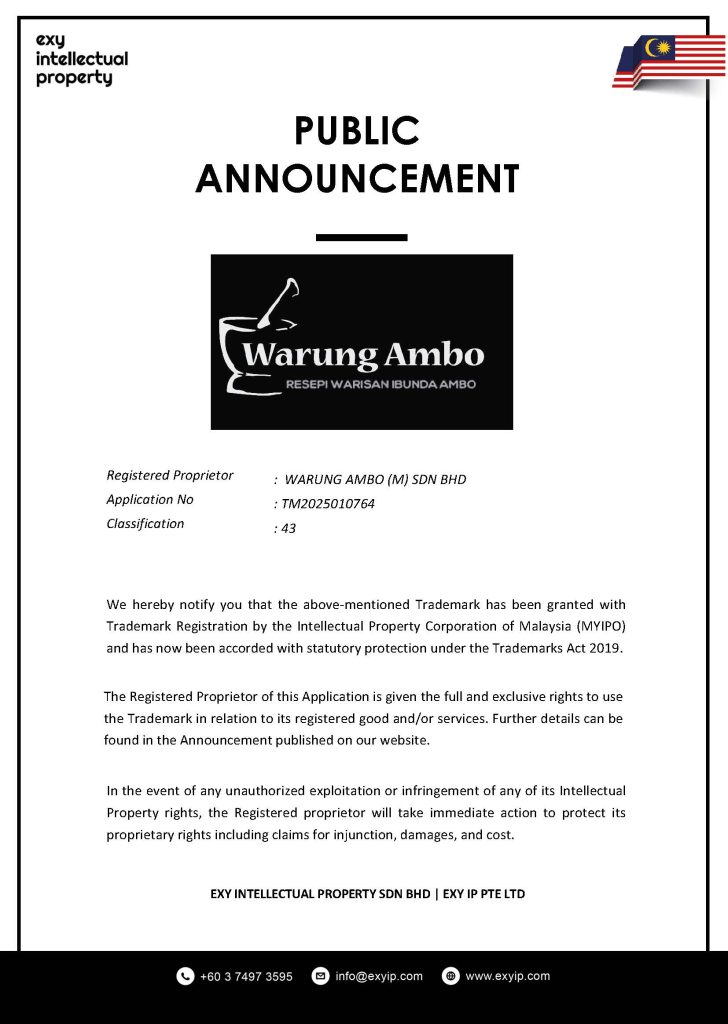 Registered Proprietor : Warung Ambo (M) Sdn Bhd