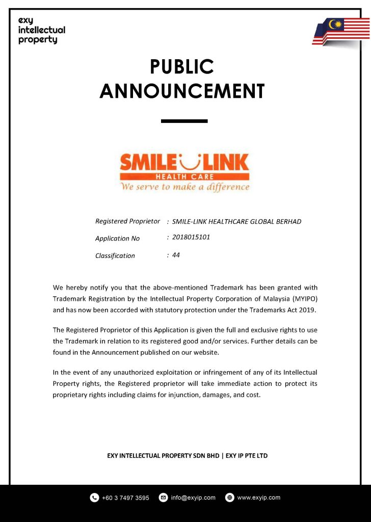Registered Proprietor : Smile-Link Healthcare Global Berhad