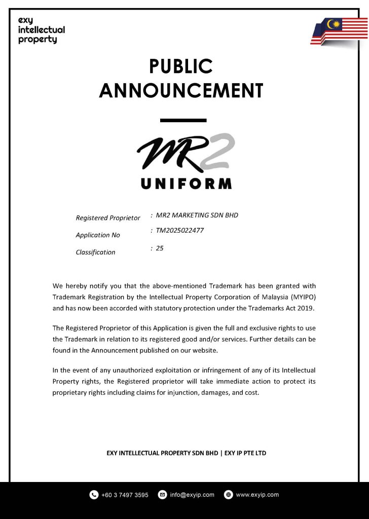 Registered Proprietor : Mr2 Marketing Sdn Bhd