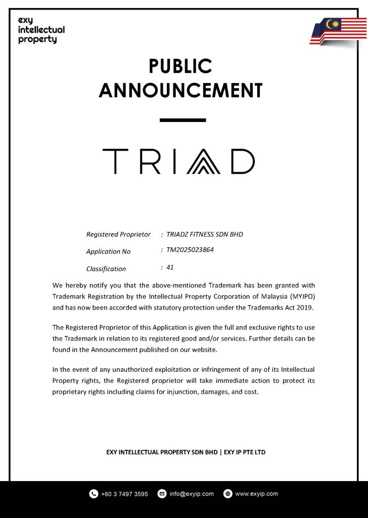 Registered Proprietor : Triadz Fitness Sdn Bhd