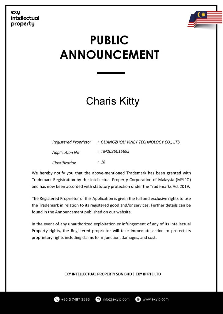 We hereby notify you that the above-mentioned Trademark has been granted with Trademark Registration by the Intellectual Property Corporation of Malaysia (MYIPO) and has now been accorded with statutory protection under the Trademarks Act 2019.
