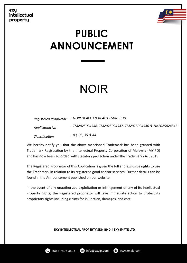 Registered Proprietor : Noir Health & Beauty Sdn. Bhd.
